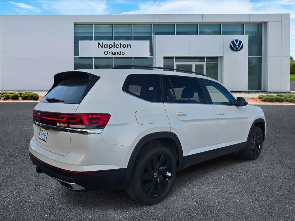 This Atlas is well equipped with Black Wheel Package (Wheels: 20" Multi-Spoke Black Painted Alloy), Panoramic Sunroof Package (Power Tilting and Sliding Panoramic Sunroof), 2nd-Row Dual Captain's Chairs, 3rd row seats: split-bench, 4-Wheel Disc Brakes, 4-Wheel Independent Suspension, 6 Speakers, ABS brakes, Air Conditioning, Alloy wheels, AM/FM radio: SiriusXM with 360L, Auto High-beam Headlights, Auto-dimming Rear-View mirror, Automatic temperature control, Brake assist, Bumpers: body-color, Compass, Delay-off headlights, Driver door bin, Driver vanity mirror, Dual front impact airbags, Dual front side impact airbags, Electronic Stability Control, Emergency communication system: VW Car-Net Safe & Secure 5-year, Exterior Parking Camera Rear, Four wheel independent suspension, Front anti-roll bar, Front Bucket Seats, Front Center Armrest, Front dual zone A/C, Front fog lights, Front reading lights, Fully automatic headlights, Garage door transmitter: HomeLink, Heated and Actively Ventilated Front Bucket Seats, Heated door mirrors, Heated front seats, Heated steering wheel, Heavy Duty Trunk Liner with VW CarGo Blocks, Illuminated entry, Low tire pressure warning, Occupant sensing airbag, Outside temperature display, Overhead airbag, Overhead console, Panic alarm, Passenger door bin, Passenger vanity mirror, Perforated V-Tex Leatherette Seating Surfaces, Power door mirrors, Power driver seat, Power Liftgate, Power steering, Power windows, Radio data system, Radio: MIB3 Composition Media, Rain sensing wipers, Rear air conditioning, Rear anti-roll bar, Rear reading lights, Rear seat center armrest, Rear window defroster, Rear window wiper, Remote keyless entry, Retractable Privacy Cover For Cargo Area, Rubber Mats Kit (2-Row), Security system, Speed control, Speed-sensing steering, Split folding rear seat, Spoiler, Steering wheel mounted audio controls, Tachometer, Telescoping steering wheel, Tilt steering wheel, Traction control, Trip computer, Turn signal indicator mirrors, Variably intermittent wipers, Ventilated front seats, and Wheels: 20" 2-Tone Machined Alloy. Price includes: $1000 - Customer Bonus. Exp. 04/30/2026