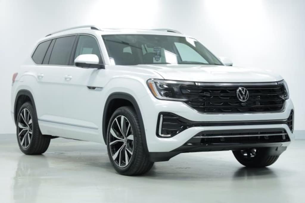 This Atlas is well equipped with 10 Speakers, 3rd row seats: split-bench, 4-Wheel Disc Brakes, 4-Wheel Independent Suspension, ABS brakes, Air Conditioning, Alloy wheels, AM/FM radio: SiriusXM with 360L, Auto High-beam Headlights, Auto-dimming Rear-View mirror, Automatic temperature control, Brake assist, Bumpers: body-color, Compass, Delay-off headlights, Driver door bin, Driver vanity mirror, Dual front impact airbags, Dual front side impact airbags, Electronic Stability Control, Emergency communication system: VW Car-Net Safe & Secure 5-year, Exterior Parking Camera Rear, First Aid Kit, Four wheel independent suspension, Front anti-roll bar, Front Bucket Seats, Front Center Armrest, Front dual zone A/C, Front fog lights, Front reading lights, Fully automatic headlights, Garage door transmitter: HomeLink, harman/kardon® Speakers, Heads-Up Display, Heated & Actively Ventilated Front Bucket Seats, Heated door mirrors, Heated front seats, Heated rear seats, Heated steering wheel, Heavy Duty Trunk Liner w/VW CarGo Blocks, Illuminated entry, Leather steering wheel, Low tire pressure warning, Memory seat, Navigation System, Occupant sensing airbag, Outside temperature display, Overhead airbag, Overhead console, Panic alarm, Passenger door bin, Passenger vanity mirror, Perforated Vienna Leather Seating Surfaces, Power door mirrors, Power driver seat, Power Liftgate, Power moonroof: Panoramic, Power passenger seat, Power steering, Power windows, Radio data system, Radio: MIB3 Discover Pro w/Navigation, Rain sensing wipers, Rear air conditioning, Rear anti-roll bar, Rear audio controls, Rear reading lights, Rear seat center armrest, Rear window defroster, Rear window wiper, Remote keyless entry, Retractable Privacy Cover For Cargo Area, Roadside Assistance Kit, Rubber Mats Kit (2-Row), Seat Inserts w/Diamond-Pattern Stitching, Security system, Speed control, Speed-sensing steering, Split folding rear seat, Spoiler, Sport steering wheel, Steering wheel mounted audio controls, Tachometer, Telescoping steering wheel, Tilt steering wheel, Traction control, Trip computer, Turn signal indicator mirrors, Variably intermittent wipers, Ventilated front seats, Volkswagen Logo Puddle Lights, VW Care, and Wheels: 21" 2-Tone Machined Alloy. Price includes: $1000 - Customer Bonus. Exp. 04/30/2026