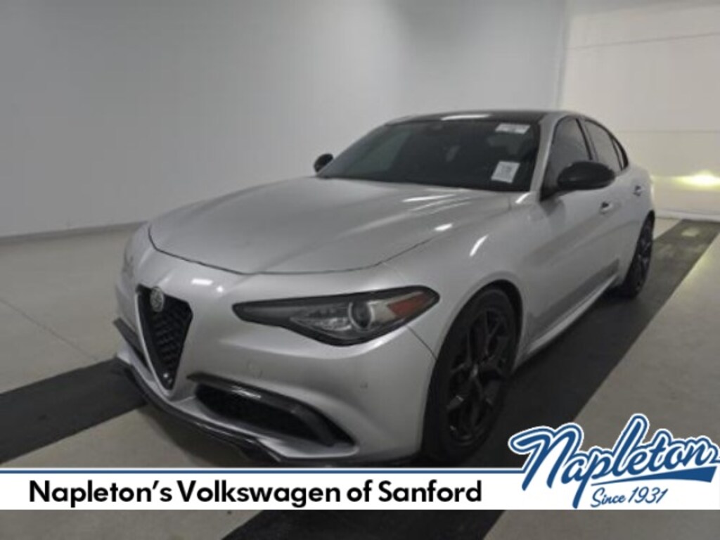 2020 Alfa Romeo Giulia I4, 8-Speed Automatic, RWD, Silverstone Gray Metallic, Black w/Leather Seats.