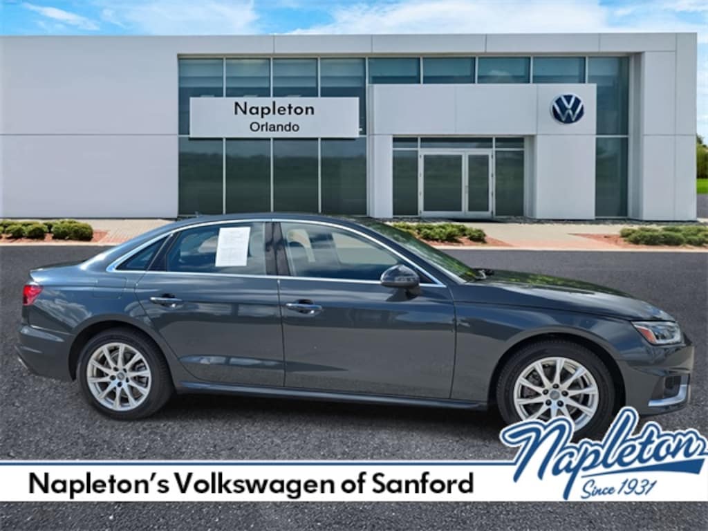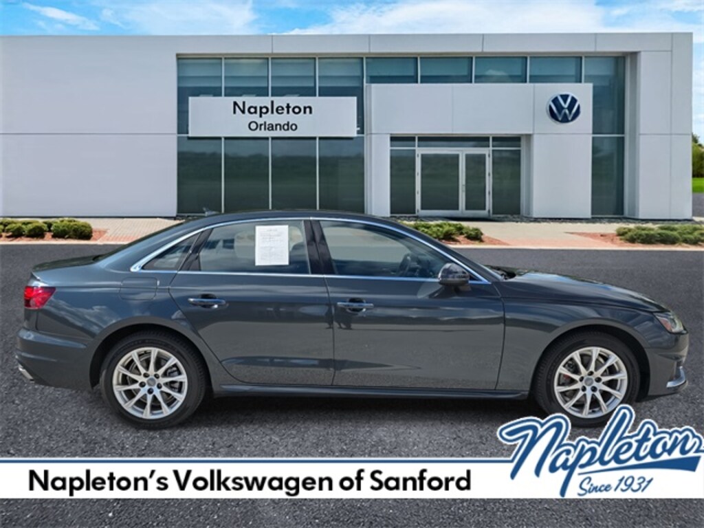 A4 40 Premium, 4D Sedan, 2.0L I4 TFSI DOHC, 7-Speed Automatic S tronic, FrontTrak, Manhattan Gray Metallic, Black w/Leather Seating Surfaces, Android Auto / Apple Car Play, Backup Camera, Bluetooth Hands Free Calling, Alloy Wheels, Leather, Sold As Is, ABS brakes, Air Conditioning, Alarm System w/Motion Sensor, AM/FM radio, Audi Advanced Key, Audi Side Assist w/Pre Sense Rear, Auto High-beam Headlights, Auto-Dimming Exterior Mirrors, Brake assist, Convenience Package, Driver door bin, Dual front side impact airbags, Front anti-roll bar, Front Center Armrest, Front dual zone A/C, Front fog lights, Front reading lights, Genuine wood dashboard insert, Leather Shift Knob, Low tire pressure warning, Memory for Driver's Seat, Occupant sensing airbag, Power steering, Rain sensing wipers, Rear anti-roll bar, Rear reading lights, Rear seat center armrest, Remote keyless entry, SiriusXM All Access Service, Steering wheel mounted audio controls, Telescoping steering wheel, Variably intermittent wipers.