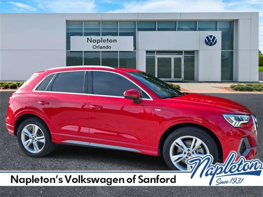 2023 Audi Q3 Premium Q3 Premium S Line quattro, 4D Sport Utility, 2.0L 4-Cylinder TFSI, 8-Speed Automatic with Tiptronic, quattro, Tango Red, Black w/Leather Seating Surfaces, Certified by Carfax - No Accidents, Certified by Carfax - One Owner, Android Auto / Apple Car Play, Backup Camera, Bluetooth Hands Free Calling, Alloy Wheels, Leather, CARFAX Certified- No Accident one Owner, CARFAX Certified - No Accident!, CARFAX Certified - One Owner!, YES! Still Under Factory Warranty, 10 Speakers, 19" Wheel Package, 3.533 Axle Ratio, 4-Wheel Disc Brakes, Air Conditioning, Alloy wheels, AM/FM radio, Auto High-beam Headlights, Brake assist, Bumpers: body-color, Driver vanity mirror, Dual front side impact airbags, Exterior Parking Camera Rear, Four wheel independent suspension, Front Bucket Seats, Front dual zone A/C, Heated Front Bucket Seats, Knee airbag, Leather Seating Surfaces, Leather Shift Knob, Occupant sensing airbag, Outside temperature display, Overhead airbag, Panic alarm, Passenger vanity mirror, Power driver seat, Power moonroof: Panoramic, Power windows, Radio: Audi Sound System, Rain sensing wipers, Rear air conditioning, Rear fog lights, Rear reading lights, Remote keyless entry, Speed control, Spoiler, Telescoping steering wheel, Variably intermittent wipers, Wheels: 19" 5-Double-Spoke Dynamic Design.