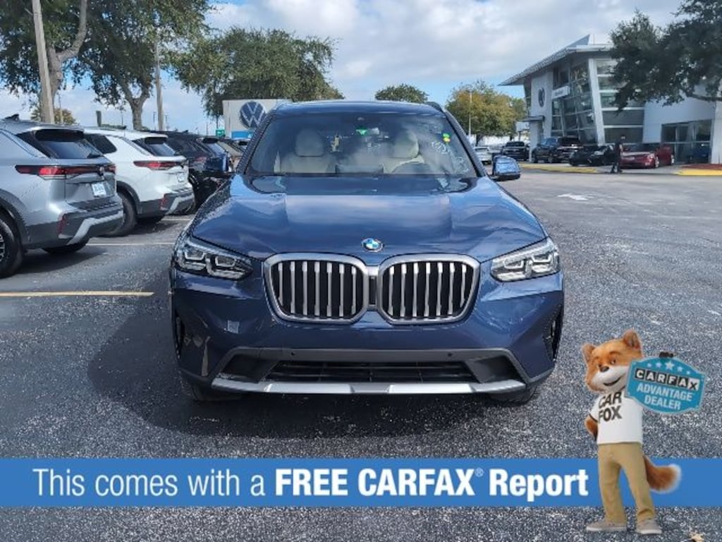 Certified by Carfax - No Accidents, Certified by Carfax - One Owner, Android Auto / Apple Car Play, Backup Camera, Bluetooth Hands Free Calling, Alloy Wheels, Leather, X3 xDrive30i, 4D Sport Utility, 2.0L I4 TwinPower Turbo, 8-Speed Automatic Sport, AWD, Phytonic Blue Metallic, Canberra Beige Premium Synthetic, Connected Package Pro, Gesture Control, Heated Front Seats, Heated Steering Wheel, Lumbar Support, Navigation, Panoramic Moonroof, Premium Package 2.