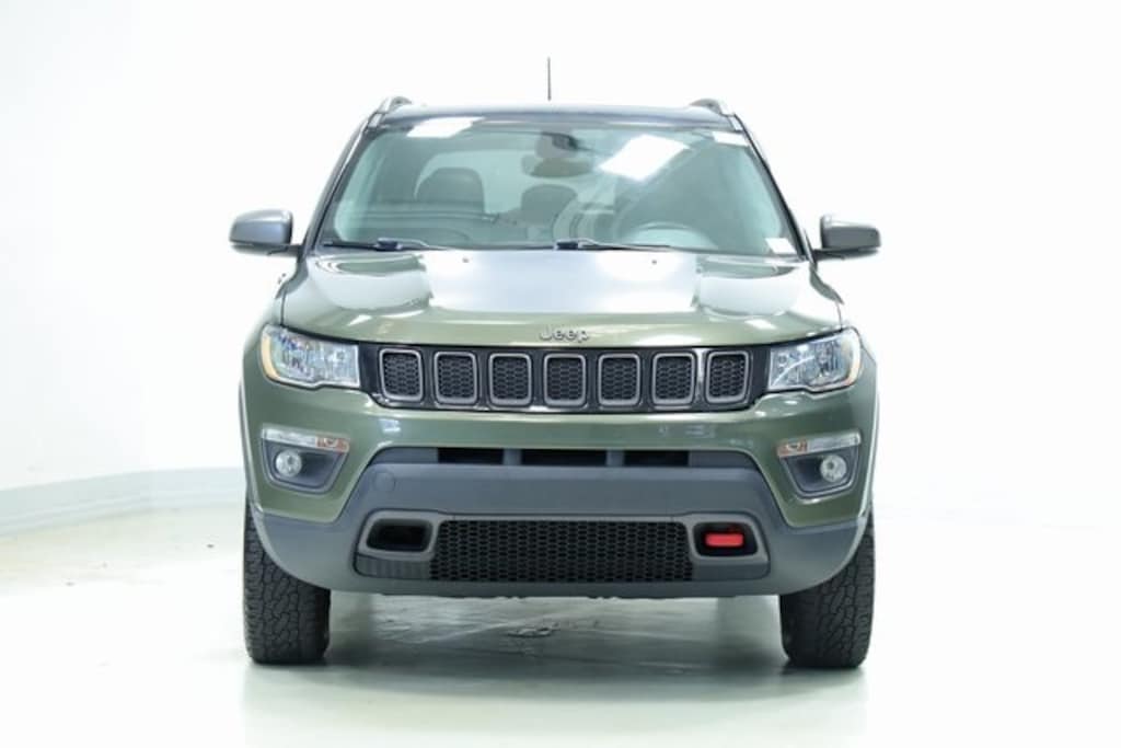 Certified by Carfax - One Owner, Backup Camera, Bluetooth Hands Free Calling, Alloy Wheels, Leather, Compass Trailhawk, 4D Sport Utility, 2.4L I4, 9-Speed Automatic, 4WD, Olive Green Pearlcoat, Black Leather, 4-Way Power Lumbar Adjust, Auto-Dimming Rear-View Mirror, Heated Front Seats, Heated Steering Wheel, Leather Interior Group, Leather w/Perforated Insert Bucket Seats, Leather Wrapped Steering Wheel, Power 8-Way Driver/Manual 6-Way Passenger Seats, Quick Order Package 27E, Remote Start System, Windshield Wiper De-Icer.