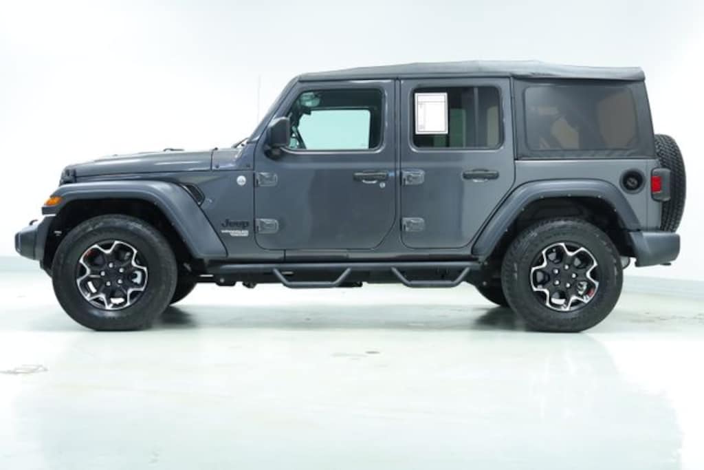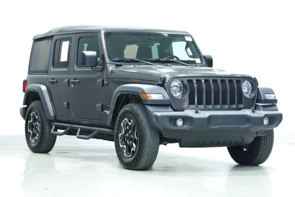 Wrangler Unlimited Sport S, 4D Sport Utility, 2.0L I4 DOHC, 8-Speed Automatic, 4WD, Granite Crystal Metallic Clearcoat, Black w/Cloth Low-Back Bucket Seats, Certified by Carfax - No Accidents, Certified by Carfax - One Owner, Android Auto / Apple Car Play, Backup Camera, Bluetooth Hands Free Calling, Alloy Wheels, CARFAX Certified- No Accident one Owner, CARFAX Certified - No Accident!, CARFAX Certified - One Owner!, 7.0" Touchscreen Display, Air Conditioning w/Auto Temperature Control, Air Filtering, Apple CarPlay, Automatic Headlamps, Cluster 7.0" TFT Color Display, Deep Tint Sunscreen Windows, Front 1-Touch Down Power Windows, Google Android Auto, GPS Antenna Input, Integrated Center Stack Radio, Leather Wrapped Steering Wheel, Power Heated Mirrors, Quick Order Package 22S Sport S, Radio: Uconnect 4 w/7" Display, Remote Keyless Entry, Security Alarm, SiriusXM Satellite Radio, Speed Sensitive Power Locks, Sport S, Sun Visors w/Illuminated Vanity Mirrors, Technology Group, USB Host Flip, Wheels: 17" x 7.5" Tech Silver Aluminum.