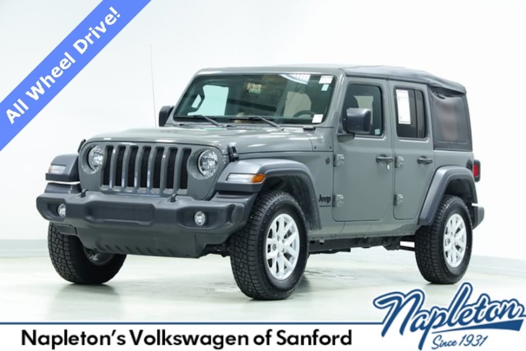 2023 Jeep Wrangler Sport S Certified by Carfax - No Accidents, Certified by Carfax - One Owner, Android Auto / Apple Car Play, Backup Camera, Bluetooth Hands Free Calling, Alloy Wheels, Wrangler Sport S, 4D Sport Utility, 2.0L I4 DOHC, 8-Speed Automatic, 4WD, Sting-Gray Clearcoat, Black Cloth, Automatic Headlamps, Deep Tint Sunscreen Windows, Front 1-Touch Down Power Windows, Power Heated Mirrors, Premium Wrapped Steering Wheel, Quick Order Package 22S Sport S, Remote Keyless Entry, Security Alarm, Speed Sensitive Power Locks, Sport S, Sun Visors w/Illuminated Vanity Mirrors, Wheels: 17" x 7.5 Tech Silver Aluminum.