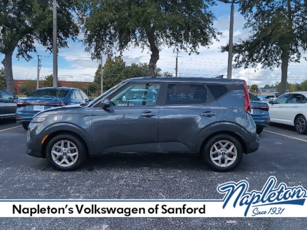 Recent Arrival! CARFAX One-Owner. Gravity Gray 2021 Kia Soul 4D Hatchback S 2.0L I4 MPI DOHC 16V LEV3-SULEV30 147hp FWD CVT Odometer is 17100 miles below market average! Clean CARFAX.