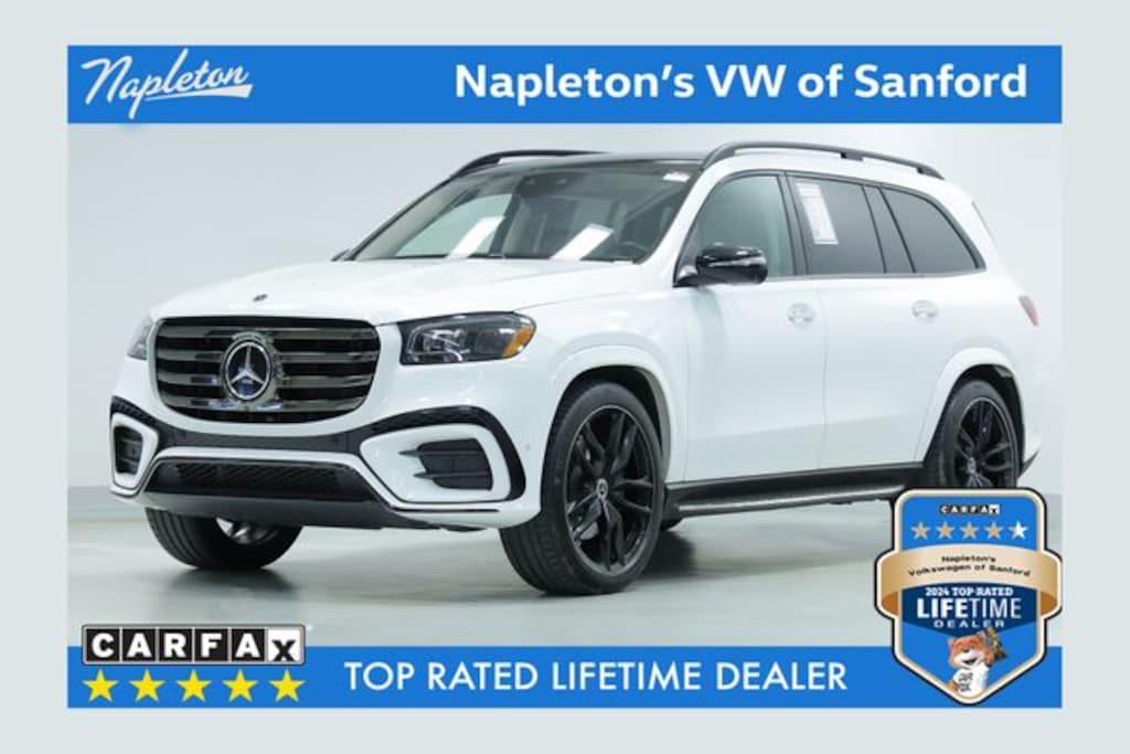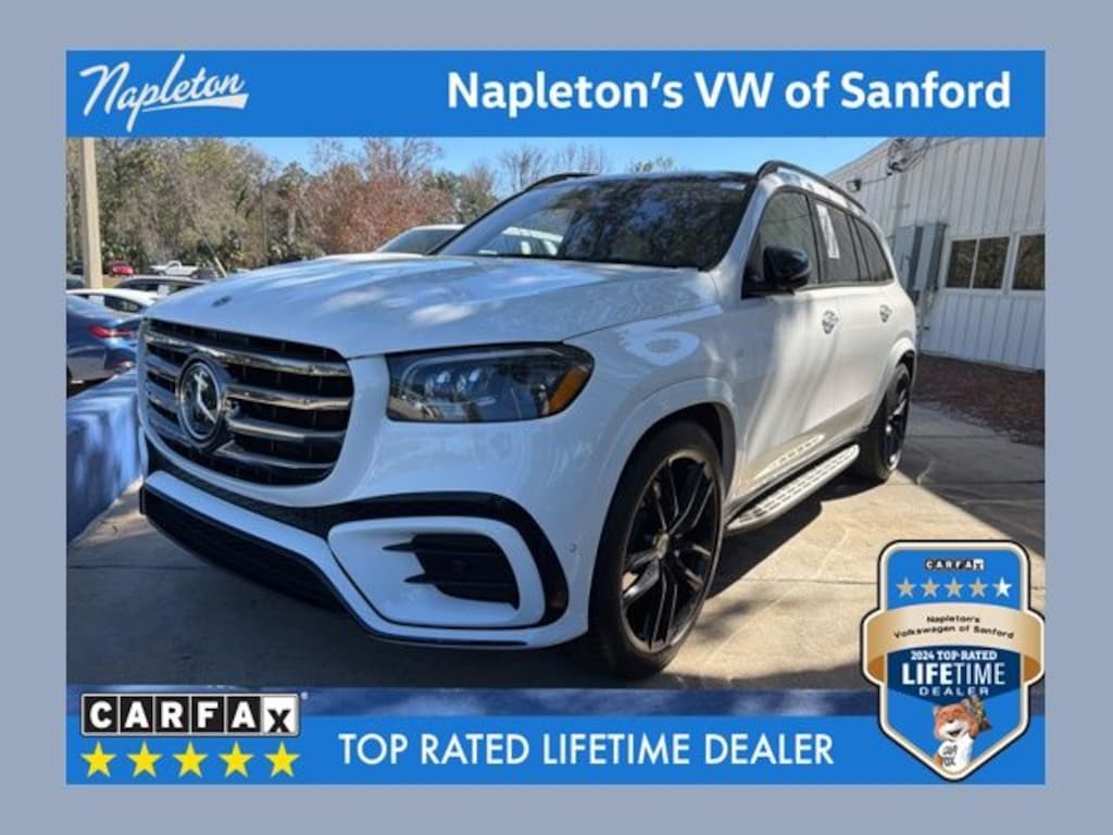 Certified by Carfax - No Accidents, Certified by Carfax - One Owner, Still Under Factory Warranty!, Android Auto / Apple Car Play, Backup Camera, Bluetooth Hands Free Calling, New Tires, Alloy Wheels, Navigation, 3rd Row Seating, Leather, Heated Seats, Sunroof, GLS GLS 580 4MATIC®, 4D Sport Utility, 4.0L V8, 9-Speed Automatic, 4MATIC®, White, MANUFAKTUR Crystal White/Silver Gray Pearl Leather, Acoustic Comfort Package, Active Multicontour Power Front Seats w/Massage, AIR BALANCE, Dark Chrome Grille w/4 Slats, Executive Rear Seat Package Plus, Head-Up Display, Heated & Ventilated Rear Seats, Heated Front Armrest, High-Gloss Black Elements, Illuminated running boards, Infrared-Reflecting Glass, Matte Black Roof Rails, MBUX Interior Assistant, Mercedes Star Pattern Logo Projectors, Multicontour Rear Seats w/Massage, Navigation system: MB Navigation, Night Package, Pinnacle Trim, Power Liftgate, Power moonroof: Panorama, Rapid Heating Front Seats, Rear Heated Armrests, Temperature Controlled Cupholders, Ventilated front seats, Warmth & Comfort Package, Wheels: 23" AMG® Twin 5-Spoke Black Alloy.