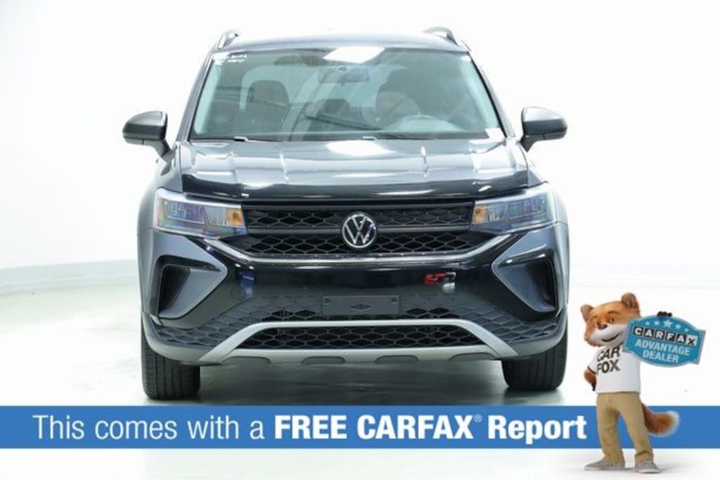 Certified by Carfax - No Accidents, Certified by Carfax - One Owner, Backup Camera, Bluetooth Hands Free Calling, Alloy Wheels, Taos 1.5T S, 4D Sport Utility, 1.5L I4 Turbocharged DOHC 16V LEV3-SULEV30 158hp, 7-Speed DSG Automatic with Tiptronic, AWD, Platinum Gray Metallic, Black Cloth.