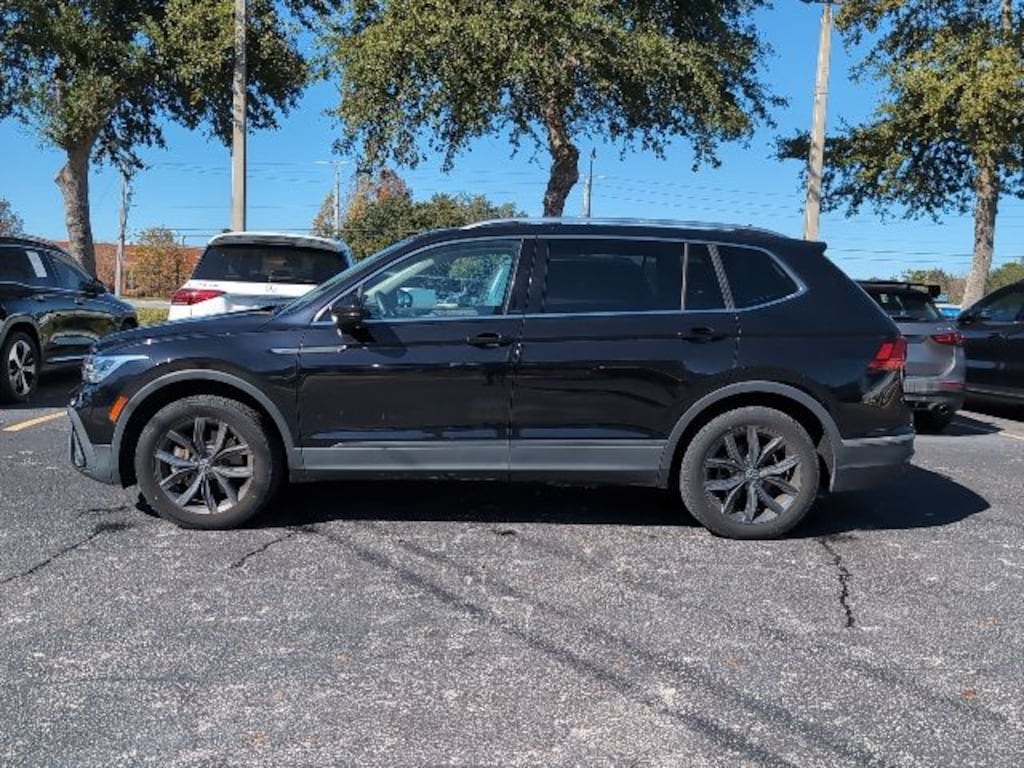 Certified by Carfax - No Accidents, Certified by Carfax - One Owner, Android Auto / Apple Car Play, Backup Camera, Bluetooth Hands Free Calling, Alloy Wheels, 3rd Row Seating, Leather, Remote Start, Tiguan 2.0T SE, 4D Sport Utility, 2.0L TSI DOHC, 8-Speed Automatic with Tiptronic, FWD, Black Metallic, Titan Black w/Perforated Vienna Leather Seating Surfaces.